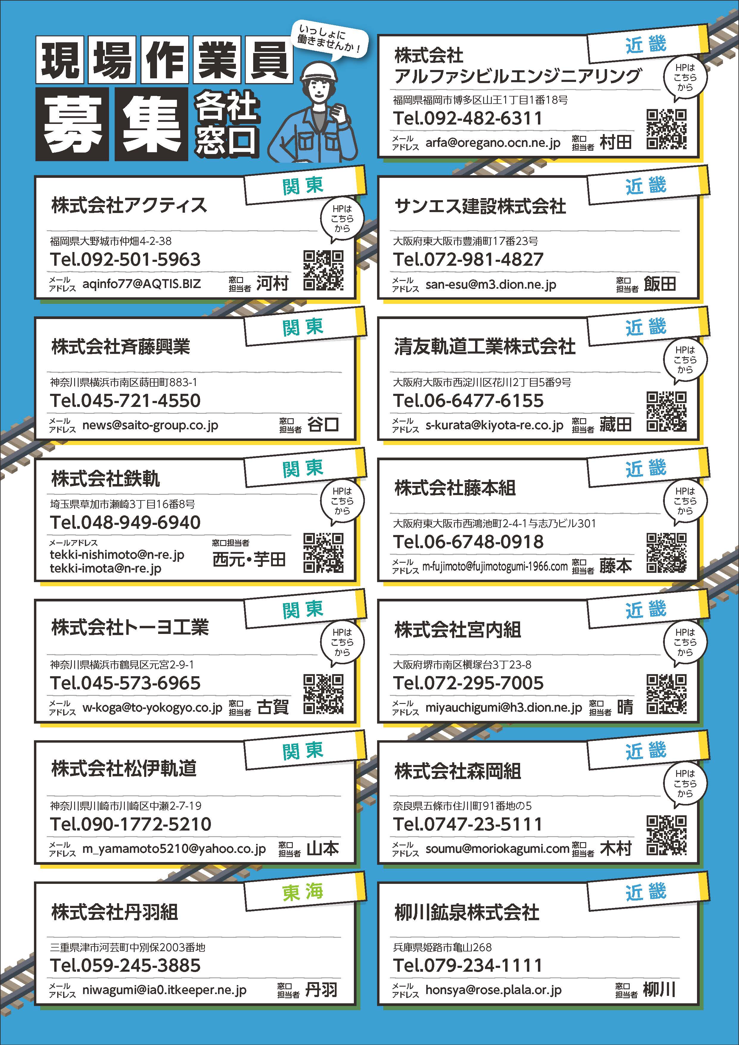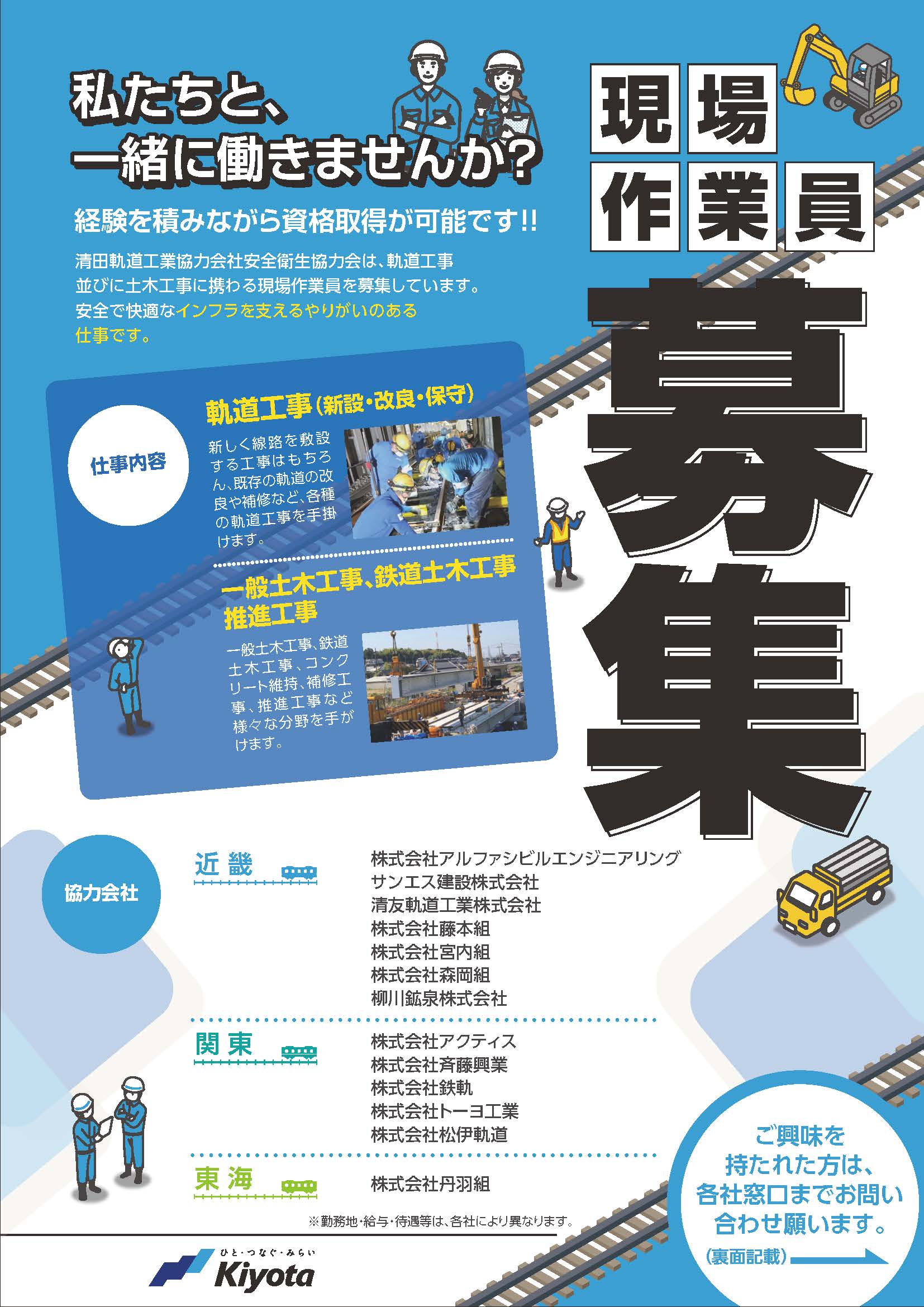 軌道工事・土木工事に携わる現場作業員を募集しています。