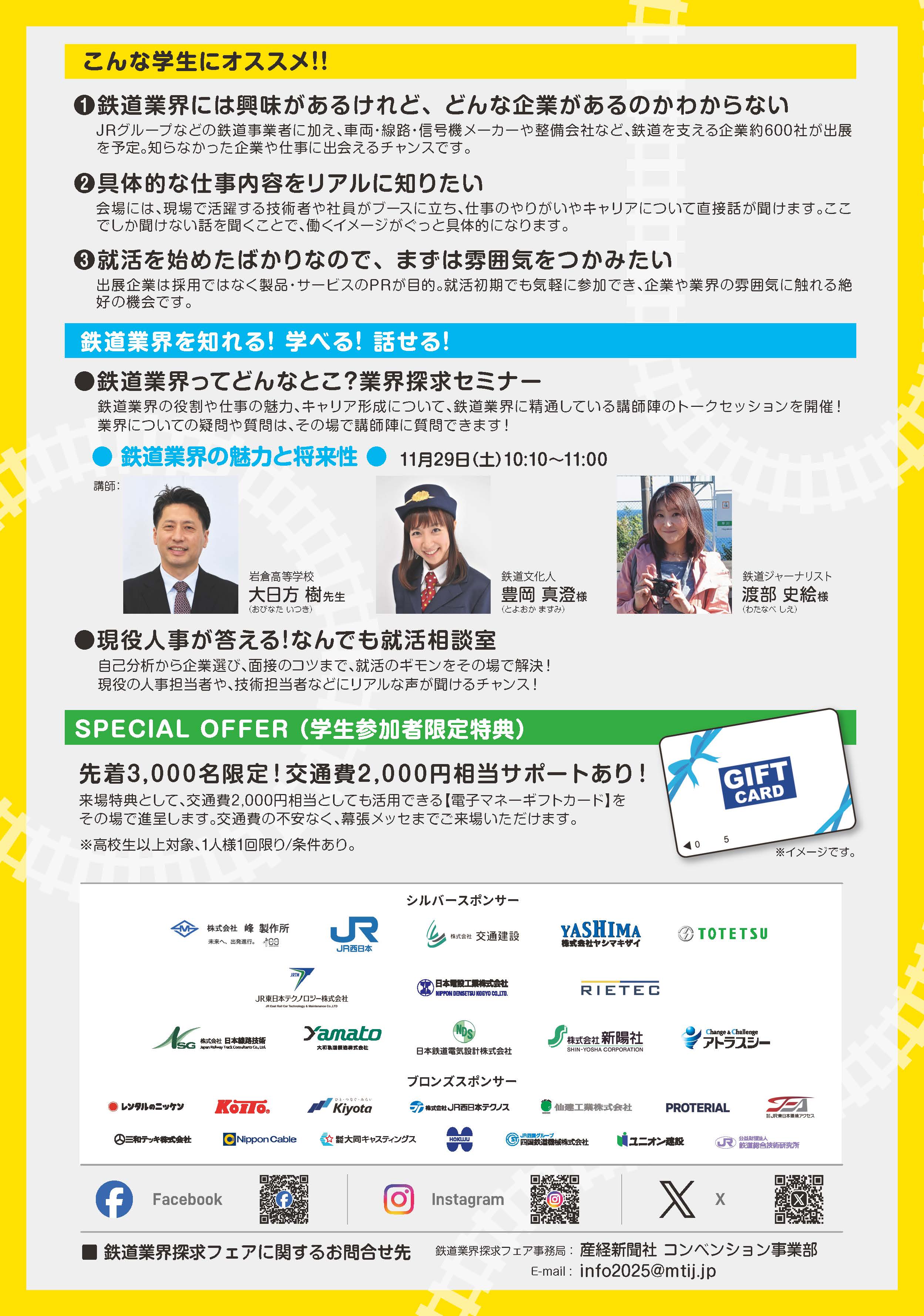 鉄道業界探求フェアの詳細・来場事前登録についてはこちらへ↓